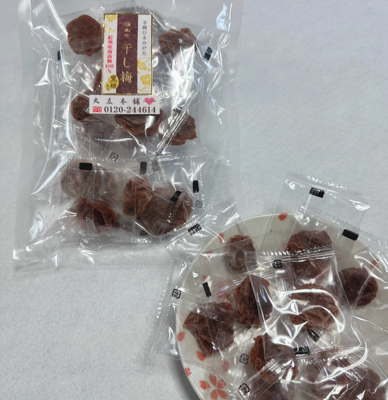 原材料名 | 梅、漬け原材料(還元水飴、食塩、醸造酢、発酵調味料、黒糖)、調味料(アミノ酸等)、甘味料(ステビア、アスパルテーム、L-フェニルアラニン化合物)、V.B1、ユッカ抽出物 |